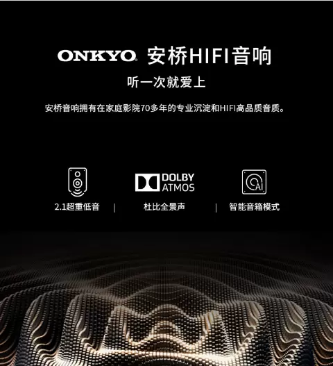 与画质一样,C8的音质在“同行”之中也是属于顶尖水平。硬件方面,C8机身内置了拥有HIFI高品质音质的专业级音响——ONKYO安桥HIFI音响,这个音响品牌属于行业顶尖音响,历经了70多年的家庭影院专业沉淀,7次定义全球家庭影院标准,是IMAX官方设备合作伙伴的全球高端音响品牌,这些响亮的头衔都有着非常强大的影响力,也正因如此,安桥音响也成为了专家和对音响有所研究的发烧友的最爱;软件方面,2.1超重低音让C8的音质更加低沉澎湃,极具力量感,而DOLBY ATMOS杜比全景声的加持,为C8打造了一个多维的立体声场空间,形成连续的声音流,让观影身临其境。还有智能音箱模式,让你更加专注于享受好声音所带来的曼妙体验。