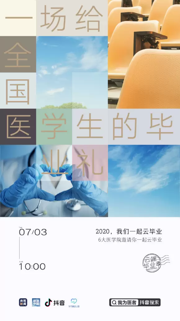 7月3日,医学毕业生们迎来一场与众不同的毕业典礼,这是央视新闻、健康中国政务新媒体与抖音联合北京大学、浙江大学、武汉大学等6所高校医学院共同打造的云毕业典礼。这场属于未来医者们的盛会,累计吸引了14万人观看,让全国各地的医学毕业生们一起在直播中庆祝毕业。