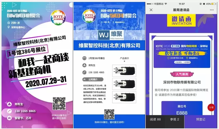 IOTE 2020组委会为参展商定制参展的宣传海报,H5等你意料之外的多维度宣传,同时,每个展商的单独二维码也帮助展商提前了解多少潜在客户和伙伴对你们关注已久,还能提前安排现场接待。这样的贴心服务,让展商不仅事半功倍,还能让自家的客户获取主办方VIP福利接待。