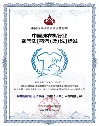 基于多年积累的技术优势和行业地位,海信作为中国洗衣机行业首个蒸烫洗团体标准的牵头制定者和标准起草组组长单位,与中国家用电器研究院联合,对行业的蒸烫洗技术的定义、技术要求、适用范围等做出明确的规范和说明。这进一步奠定了海信洗衣机行业蒸烫洗护专家的地位,同时将进一步规范市场行为,推动洗衣机行业持续健康发展。