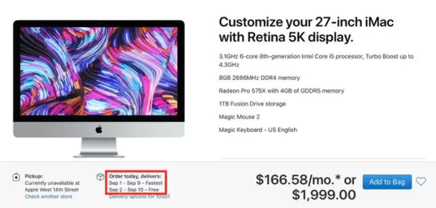 苹果27寸iMac发货时间延长:用户两个月才能收到机器