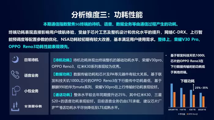 搭载天玑1000系列5G芯片的OPPO Reno3 在5G下行传输中功耗最低(图/网络)
