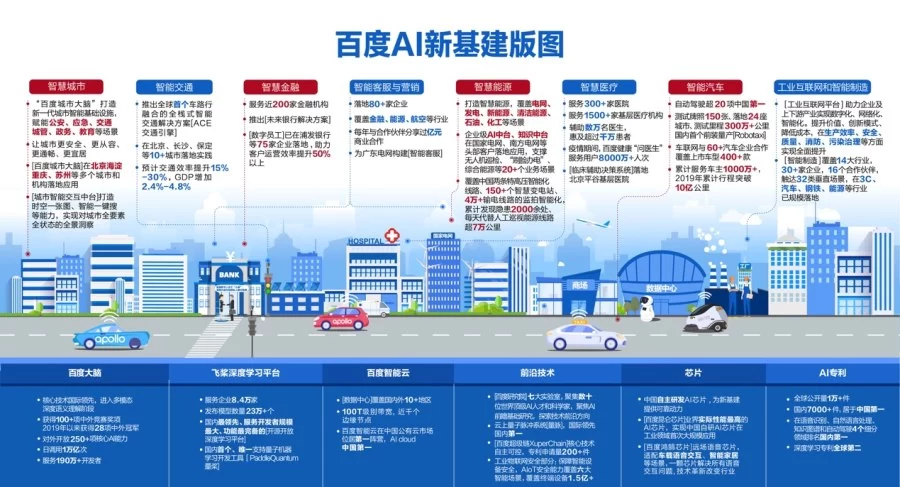 6月,百度还对外公布了业内首张AI新基建版图。百度正在依托包括百度大脑、飞桨、智能云、芯片、数据中心等在内的新型AI技术基础设施,推动智能交通、智慧城市、智慧金融、智慧能源、智慧医疗、工业互联网和智能制造等领域实现升级。百度的三个“5”, 进一步加大数据、算力等基础设施建设,并通过人才培养,吸引更多AI人才加入新基建浪潮,为千行万业的产业智能化升级贡献力量。