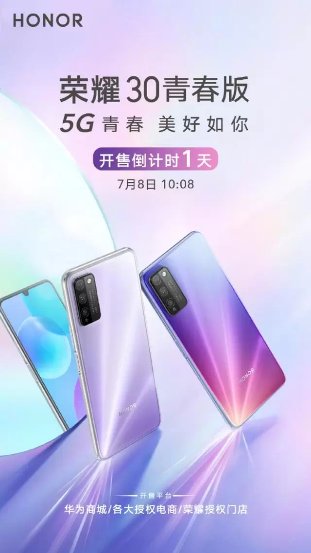 年轻人的5G拍照轻旗舰来了!荣耀30青春版明日正式首销
