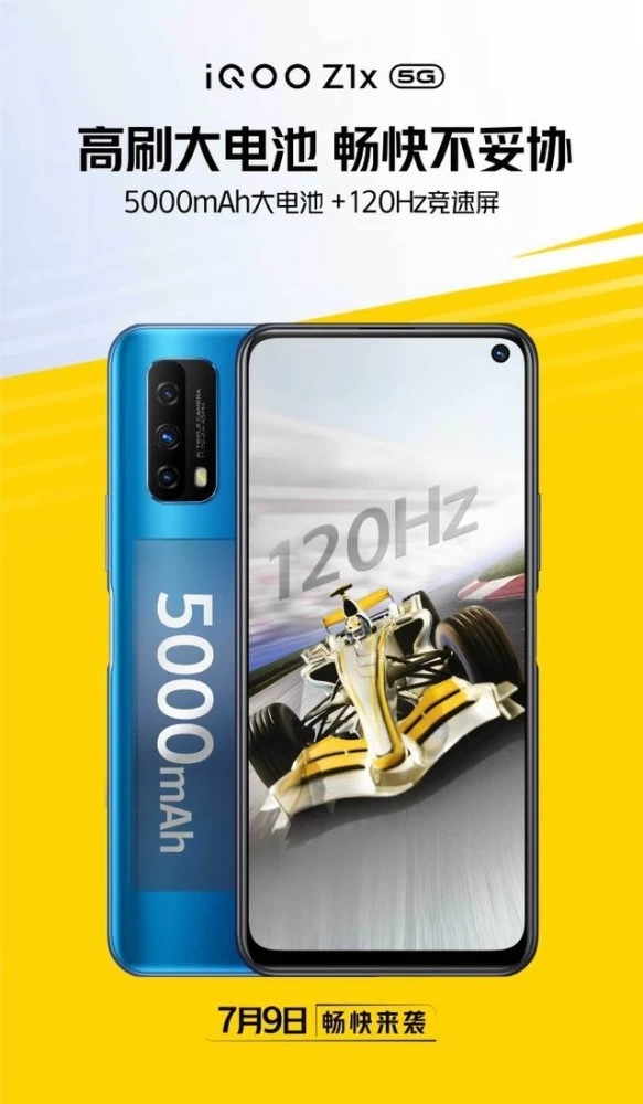 iQOO Z1x新品发布会将于7月9日举行,相信不少朋友都对这款“5G流畅先锋”兴趣满满。目前iQOO官方对新品进行了多轮预热,今日确认iQOO Z1x将搭载120Hz高刷新率屏幕+5000mAh超大电池。