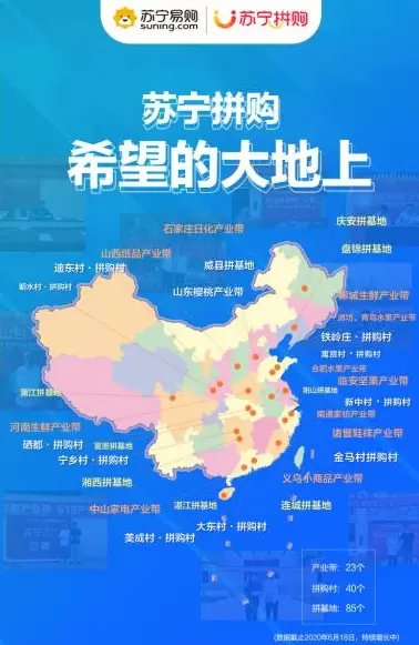 截至今年6月,苏宁拼购初步形成了由40个拼购村、23个产业基地、85个拼拼农庄以及71个拼拼工厂组成的“直卖矩阵”。