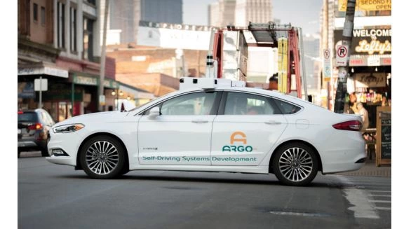 布莱恩·塞勒斯基是卡内基梅隆大学格纹呢车队的软件主管。他后来领导了谷歌自动驾驶汽车项目和慧摩的工程化,并创建了 Argo 人工智能。图中的车辆是 2017 年 8 月的 Argo 原型。(照片由 Argo 人工智能提供,来自《自动时代:无人驾驶重塑世界》)