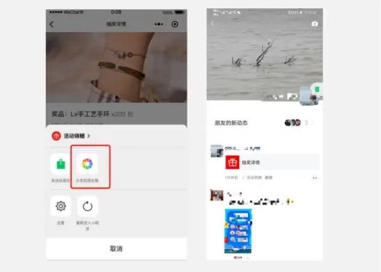而“小程序分享朋友圈”功能开放后,小程序的分享门槛将被大幅度降低,用户只需要在微信原生的分享中,点击分享到朋友圈,编辑朋友圈内容即可将小程序一键曝光在朋友圈中,路径大大被缩短,还能获取来自朋友圈的庞大流量。
