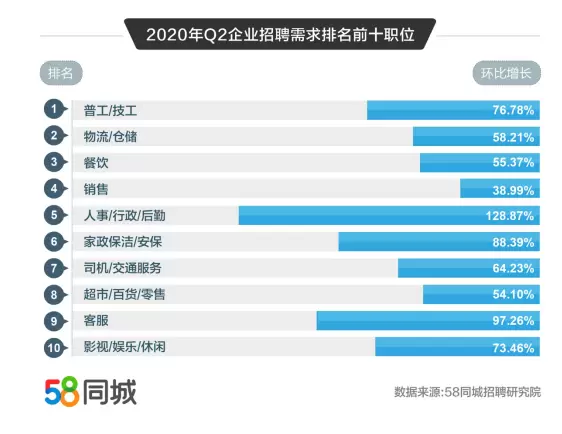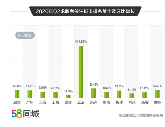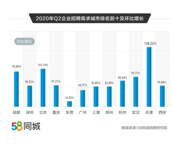 58同城《2020二季度人才流动趋势》:招聘需求环比上升超75%,一线城市求职热度高