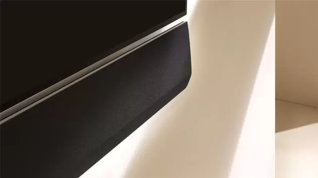 GX Soundbar 的宽度为 144.6 厘米,与 65 英寸 GX Gallery 电视的宽度完全相同,官方有意这样设计也是让这款配件更好的适配 65 英寸的 GX Gallery 电视。除此之外,该产品的表明与电视材质相似,高度和深度也分别为 15 厘米和 3.25 厘米,可以与电视机本身完美贴合。