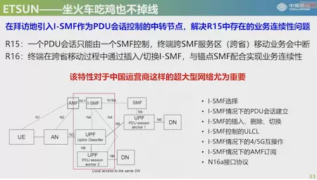 此前在R15标准的网络下,一个PDU会话它只能有一个SMF控制,如果说这个终端移动出了SMF的控制范围,那么它的数据连接就会中断。类似这样的场景,对于国内电信运营商而言会经常出现,因为运营商部署一个设备,一定是服务于一个或几个省,不可能服务于全国,所以用户坐火车是,一旦出了SMF服务范围,会话就会中断。