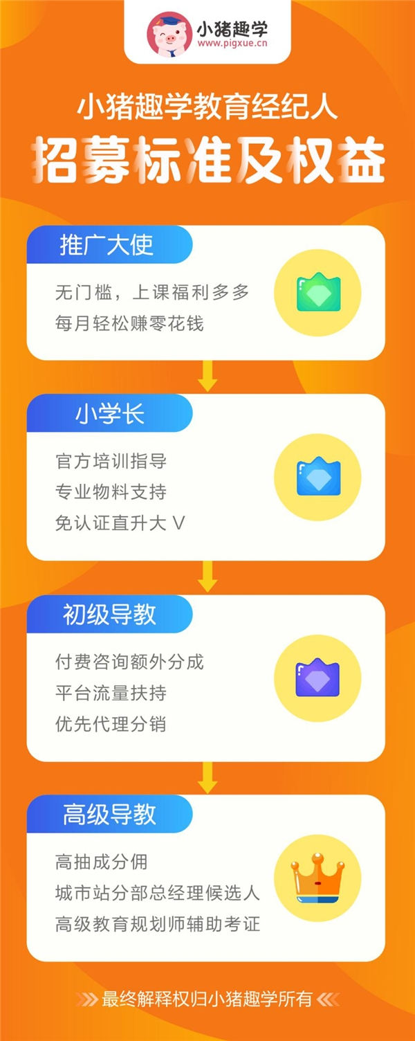 下面一起来看看小猪趣学教育经纪人具体有哪些权益吧~