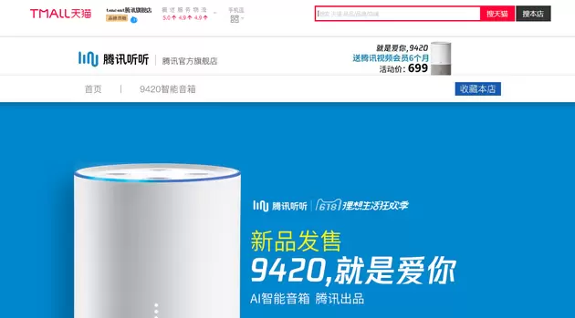 腾讯官方入住天猫旗舰店 上架一款人工智能音箱