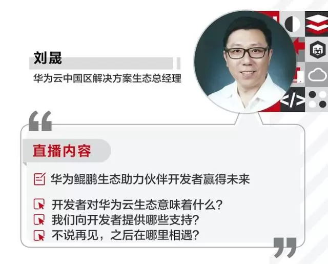 7月9日,华为DevRun开发者沙龙系列活动继续在线上举行,"华为云和TA的朋友们公开课"迎来第一季的最后一期直播课程。本次公开课的主题是《华为云鲲鹏开发者资源宝典大集合!》,课程由华为云资深生态发展总监朱琰、华为云生态发展总监刘长伟、华为云中国区解决方案生态总经理刘晟共同主讲。