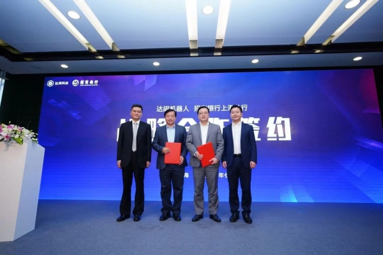 在上海市经济和信息化委员会主任吴金城、上海市科学技术委员会副主任王晔的见证下,达闼科技旗下公司达闼机器人与招商银行上海分行进行了战略合作签约,达闼科技创始人兼CEO黄晓庆和招商银行上海分行行长助理孟俊清交换了协议。