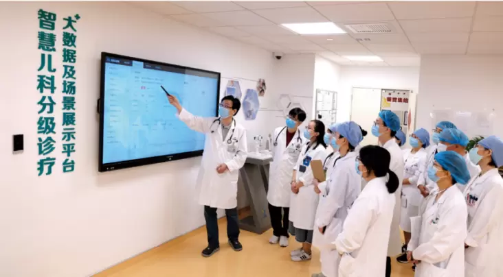 印象中,医生总是穿着白大褂,挂着听诊器。小小听诊器中既蕴含着医者的仁心,也藏着听者的智慧。走进国家儿童医学中心、上海交通大学医学院附属上海儿童医学中心(简称“儿中心”)门诊大楼11层,一块智慧大屏上跳动的实时数据,让交接班的大事小情尽收眼底。
