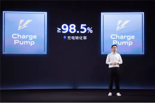 此外,iQOO还使用了先进的双电荷泵技术,通过两颗并联的独立充电芯片,将可将 20V 6A 转化为 5V 12A 的电流,能有效的降低通路上的阻抗,提升整体充电的转化率。