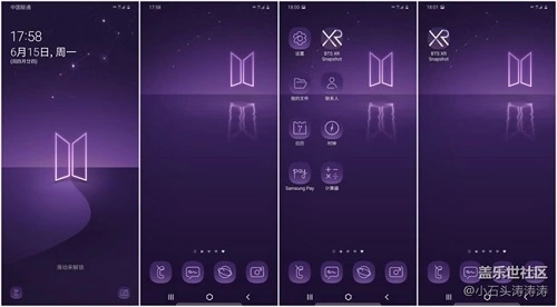 开机后与普通版三星Galaxy S20+5G展示的产品名称的开机画面不同,BTS定制版的开机画面单独定制了动态效果,在产品名称显示结束后会出现BTS的LOGO以及“I Believe in Your Galaxy”同时画出心形图案,让粉丝为这份独特的定制瞬间感动。除此之外,专属的定制主题不仅以紫色为基准色调,在锁屏画面上,还有专门的动态画面,可以说从开机的那一刻起,阿米们就能感受到来自Idol们深深的宠爱。