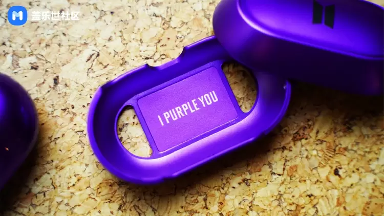 在此次BTS定制版的耳机中,三星为Galaxy Buds+ BTS定制版也换上了通体紫色的“皮肤”,彰显着与BTS的紧密联系。并且在充电盒、耳机上均能够找到标志性的紫色心形元素与专属的BTS LOGO。另外,随盒还附赠了一款专用的Galaxy Buds+ BTS定制版保护壳,除了紫色的外观及专属的LOGO外,在内侧底部还印有“I Purple You”的字样,仿佛在向阿米们说“遇见你紫爱你”。