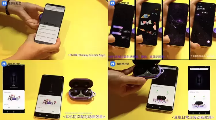 此外,在保护壳“I Purple You”处还“藏有”一颗NFC芯片。在连接手机后,还可以为阿米们下载另一个Galaxy Buds+ BTS定制版的主题,包括壁纸图标以及锁屏动画,并且在Galaxy Buds+ BTS定制版与手机初次连接和日常连接时,会呈现不同的动画效果,对于阿米们而言无疑是一个大大的惊喜彩蛋。