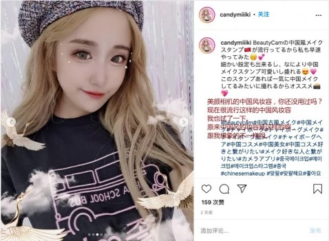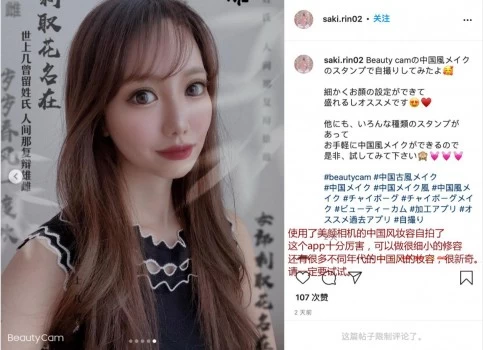 在Instagram上,#中国メイク#(意思为#中国妆容#)的话题主贴数也已经超过1.1万。