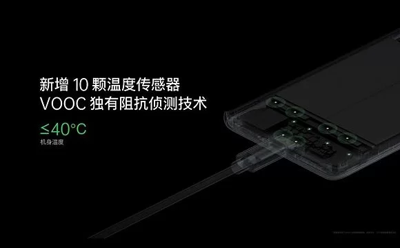 在安全性方面,125W超级闪充有着更为严格的温度控制,在原有的4颗温度传感器基础上,125W超级闪充新增了10颗温度传感器,分布在电池极耳、电池主板BTB和USB接口,任何温度异常都能第一时间反馈给手机和适配器。另外,数据线也导入了E-marker加密,再加上OPPO独有的128位加密算法,全方位保障充电安全。