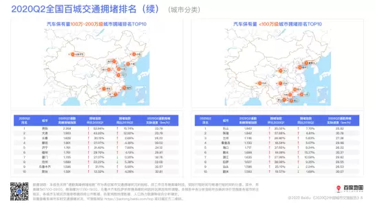 百度地图2020 Q2城市交通报告:高峰拥堵基本恢复至疫情前水平