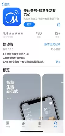 苹果手机进入App store搜索「美的美居」进行下载安装;