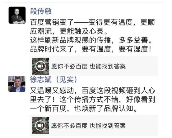 如著名财经作家、战略营销专家段传敏所说,“百度营销变了——变得更有温度,更顺应潮流,更触及心灵。”畅销书《社交红利》作者徐志斌也说,“好像看到一个新百度,也唤新了品牌认知。”