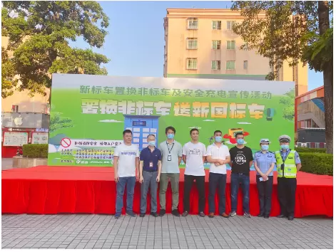 为了减少发生电动自行车充电火灾事故,深入宣传电动自行车使用管理的新政策、新理念和新举措,近日,深圳市电动自行车行业协会邀请中国质量认证中心深圳分中心、深圳市计量质量检测研究院、深圳市光明区应急管理局、深圳市城市公共安全技术研究院、光明区交警大队、马田街道办事处、城安院消防中心等部门领导专家,以及春藤物联、爱玛、台铃、雅迪、永久、美翎、平安产险等电动车相关生产、经销和配套服务商共同参与本次在深圳市公明中心商城广场集中为广大市民群众提供“新国标车展示活动”和“以旧换新(置换非标车送新国标车)”现场宣传,现场民众还踊跃体验了春藤物联推出的智能充换电柜安全充电应用和电池检测门的使用功能场景。