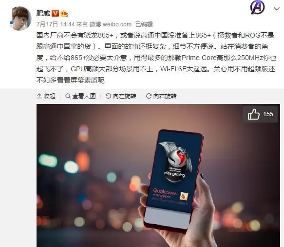 据数码大V透露,高通并没有在国内推出骁龙865 Plus的打算, 联想和ROG的骁龙865 Plus不是高通中国供货,一线大厂也没有推出骁龙865新旗舰的消息。