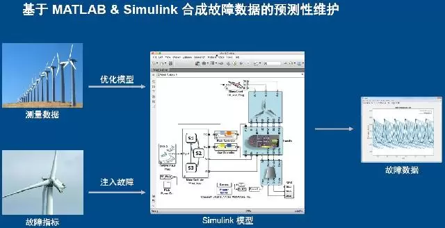 “没有数据还玩什么AI?”这可能是很多人的第一反应。但在赵志宏给出的另一个案例中,用户不可能等采集到大量风力发电机的故障数据之后再做预测,这样不符合设备维护的目标。所以业内人士的做法是先用Simulink模型建立一个风里发电机的模型,通过校正让这个模型非常接近风力发电机,然后通过该模型产生故障数据,进而训练机器学习或者深度学习的神经网络。