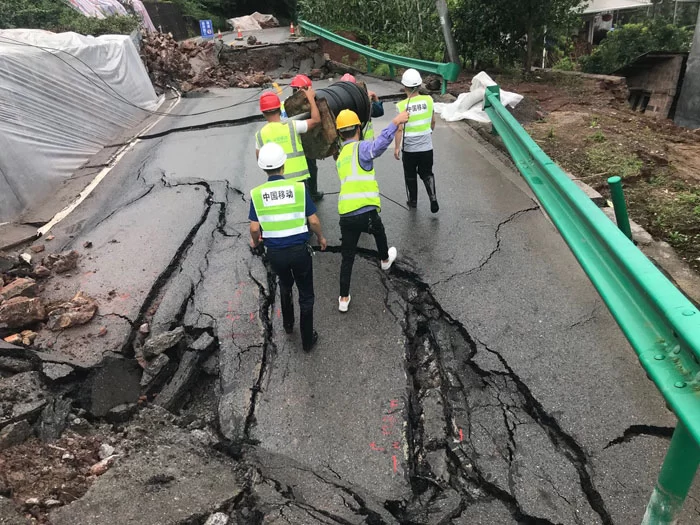 据湖北移动恩施分公司抢险人员介绍,20日6时20分,湖北移动紧急抽调35名抢险人员携带卫星电话、油机、光缆等物资赶赴一线,提供通信保障。据抢险队员观察,路面可以看到明显隆起变形,有的地方甚至出现了裂痕,随后立即通知堰塞湖下游的分公司启动应急预案,对堰塞湖下游沿线开展通信设施摸排,并制定堰塞湖可能溃坝的人员撤退配合方案和灾后通信抢险恢复方案。
