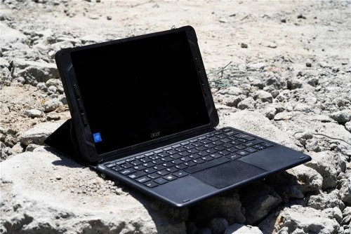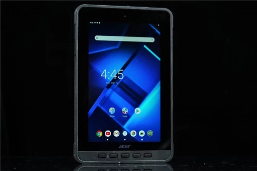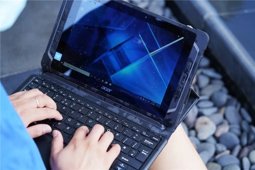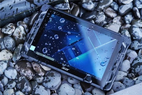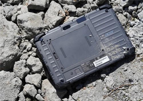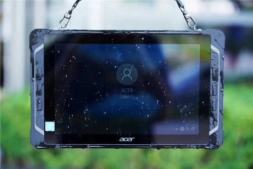 宏碁Enduro T1为方正的造型,Windows版本配备的是10.1英寸的防水触摸屏,具备MIL-STD-810G军规级认证以及IP54的防水防尘等级,可在极限温度以及恶劣环境中运行。