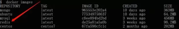 3.查看本地镜像,使用以下命令来查看是否已安装了 redis: