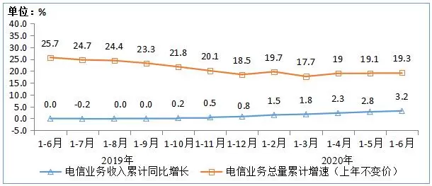 2020年上半年我国电信业务收入6927亿元 同比增长3.2%
