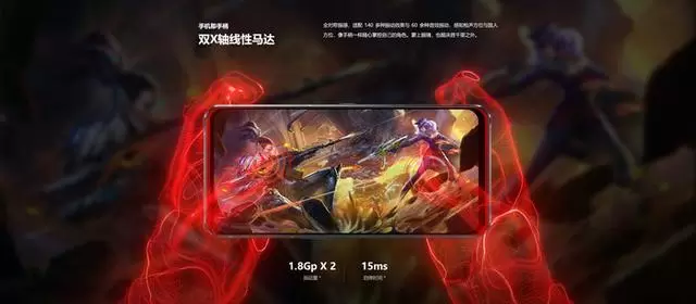中置弹出式前置摄像头主要针对游戏直播设计,具备2000万像素,辅以前摄灯效自拍补光、AI美颜、AI滤镜、AI图像画质增强等丰富功能,游戏玩家边玩游戏边视频。此外,用户还可以在游戏、微信视频过程中开启双屏双景摄录,前后摄像头同框显示。