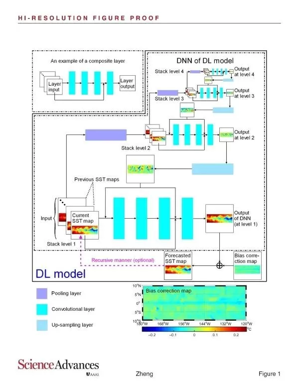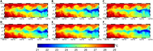 近日,由中国科学院海洋研究所研究员李晓峰领衔、国内多家海洋科研单位人员组成的人工智能海洋学团队,以热带不稳定波相关联的海表温度场为例,研发了以卫星遥感大数据驱动的针对海气系统中复杂海洋现象的人工智能预报模型,并在针对热带不稳定波相关的海表温度时空演变预报方面取得研究进展。相关成果以Purely satellite data-driven deep learning forecast of complicated tropical instability waves为题,发表在Science Advances上。