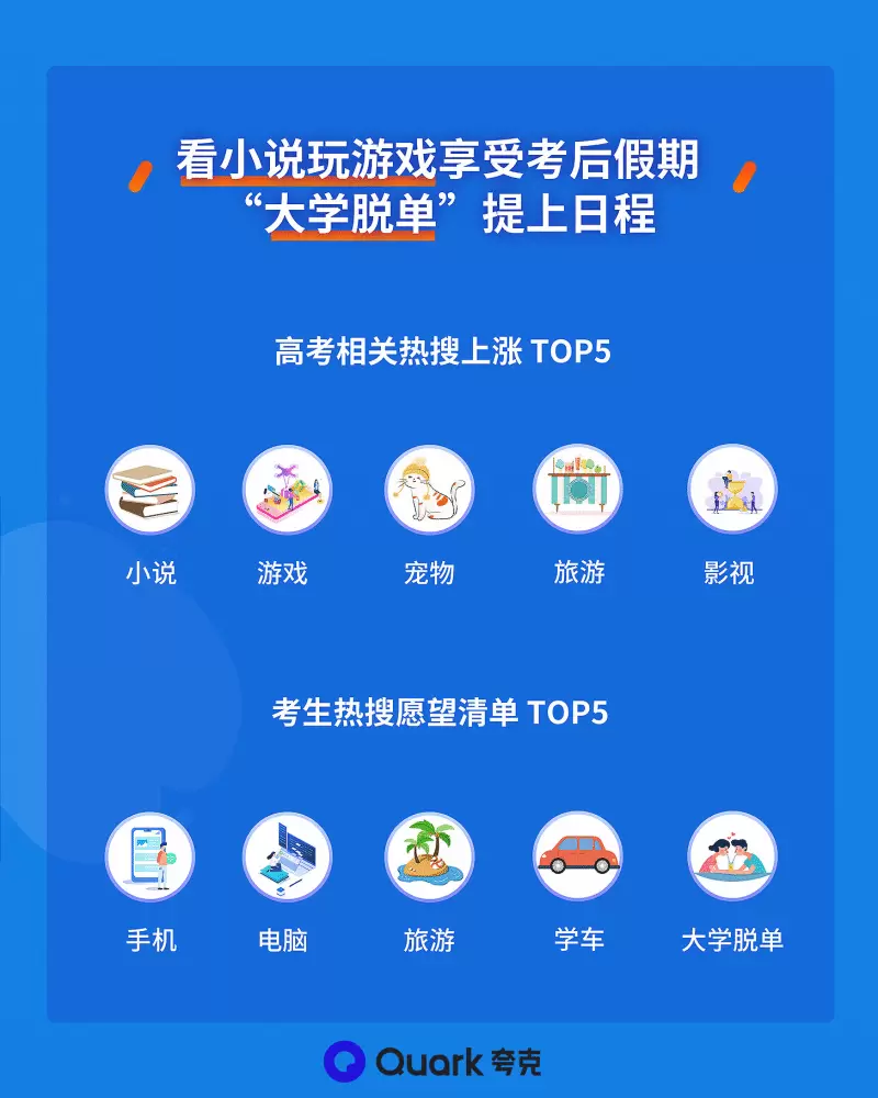 与此同时,“高考结束做什么”、“假期怎么玩”等关注考后如何调整、放松的话题也悄然升温。读小说、玩游戏、养宠物、去旅游、看影视……高考后的假期太潇洒,“大学脱单”也与买电子设备、旅游、学车,一起登陆了考生的“愿望清单”,00后准大学生们的校园生活将足够精彩。