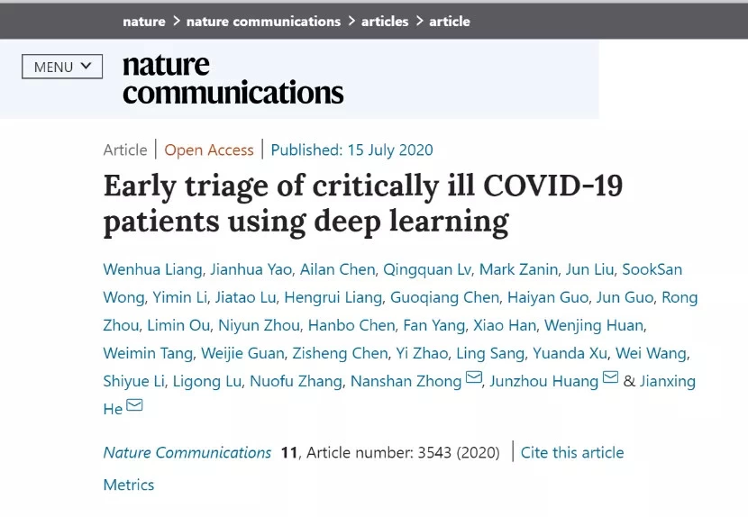 钟南山和腾讯研发新冠AI预测模型登Nature子刊,助力新冠患者预测