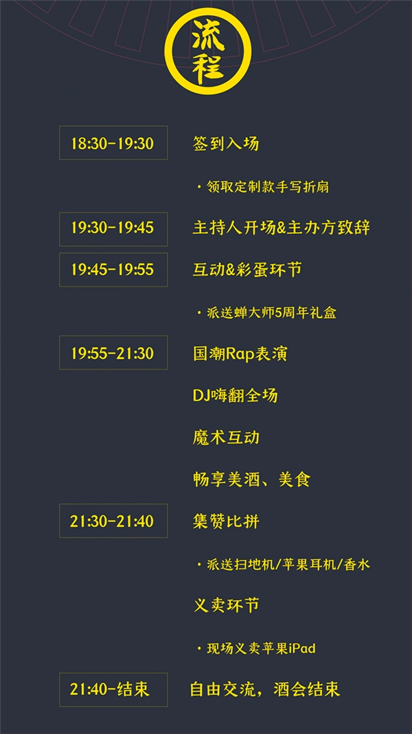 另外,蝉大师“玩艺复兴夜”还设置了互动游戏环节,将为参会者送出惊喜壕礼,扫地机器人、AirPods Pro、香水、定制书法扇子等你领回家。