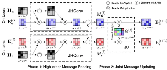 在这种情况下,百度提出了一个双通道超图协同过滤框架来解决上述问题。首先,引入了一种整体利用分治思想的双通道学习策略,来学习用户和物品的表示,以使得这两种类型的数据可以优雅地相互连接,同时仍然保持它们的特定属性。其次,使用超图结构来显式建模混合高阶用户和物品的高阶关联。百度研究团队进一步提出了跳跃超图卷积方法来支持超图上显式、高效的嵌入传播。在两个公开数据集和两个新的真实数据集上的综合实验表明,与其他先进的方法相比,百度所提出的双通道超图协同过滤方法可以取得显著且一致的性能提升。