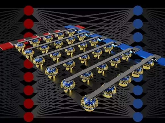 研究人员将一个小电流通过一个电阻器传递到一根导线中,然后将许多这样的导线连接在一起,使电流聚集起来,就实现了大量计算的并行。而且,所有这些都在模拟存储芯片内完成,不需要数字芯片里数据在存储单元和和处理单元之间传输的过程。