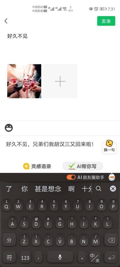 发朋友圈总没人点赞?搜狗输入法AI写作助手一秒钟帮你搞定
