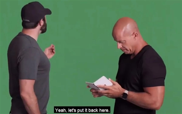 此次出现的依然是白色款式,硬连接双屏设计,看起来操控效率挺高。遗憾的是,手机正面并未展示出来,我们也无法得知系统的开发适配到底进行到了哪种程度。
