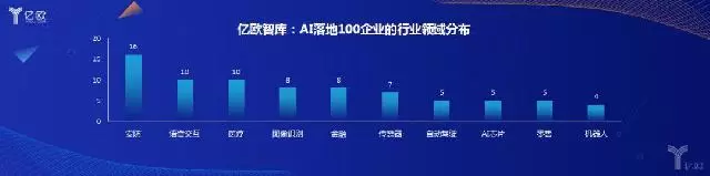 从细分行业领域来看,AI结合安防、语音交互、医疗大健康的商业化做得最好,都超过了10家企业。AI图像识别和AI金融各有8家、AI传感器7家。自动驾驶(汽车出行)、AI芯片、AI零售、AI机器人这些领域也都有不少企业入选。
