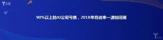 可以理解的是,大多数AI公司需要先夯实技术产品,2018年才刚刚开始探索商业化。但对于AI创新企业来说,如果在2018年无法在商业化上取得突破,将面临严峻的发展困境。亿欧智库统计,伴随着2016年之后的AI投资创业大潮发展起来的AI企业,90%以上依然处在亏损阶段,2018年行业将迎来一波倒闭潮。