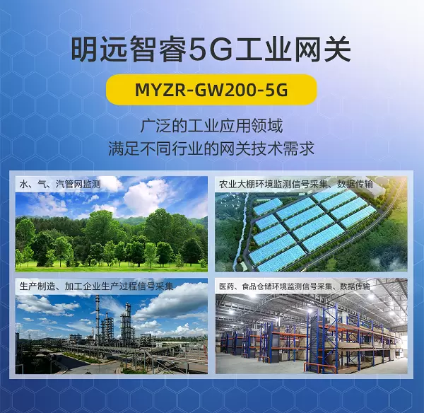 此次推出的MYZR-GW200-5G网关是明远智睿在5G通信产品上的又一重大里程碑作品。这一产品可广泛应用于商业、工业领域。如:水、气、汽管网监测;EMS(能源管理系统)信号采集、传输;生产制造、加工企业生产过程信号采集、数据传输;农业大棚环境监测信号采集、数据传输;医药、食品仓储环境监测信号采集、数据传输等领域,满足了不同行业的网关技术需求。