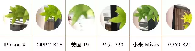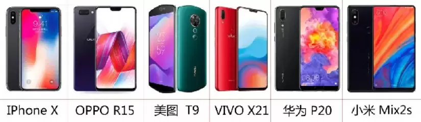 OPPO R15 >小米MIX2s >美图T9 > vivo X21 >华为P20 > iphone X