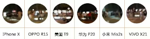 美图T9 > OPPO R15 >华为P20> vivo X21 >小米MIX2s > iphone X